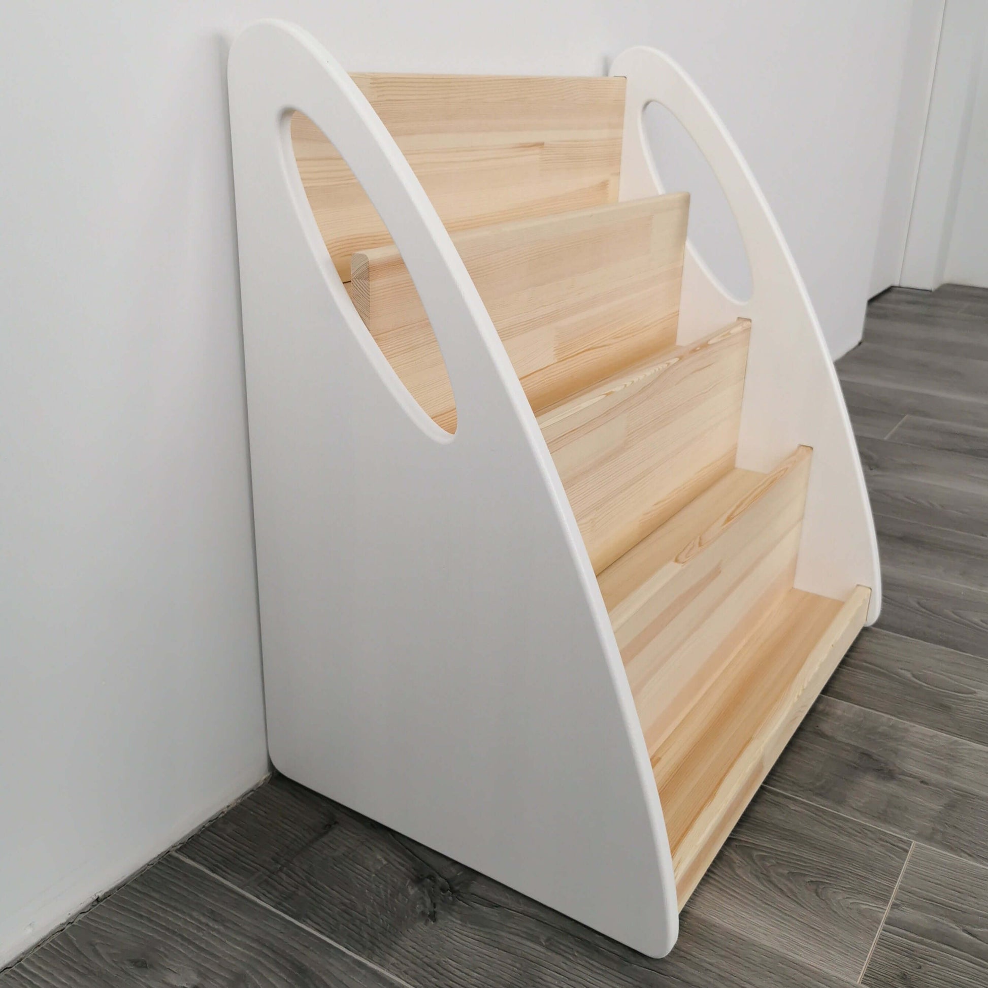 • Une bibliothèque de qualité, fabriquée artisanalement selon les principes Montessori.